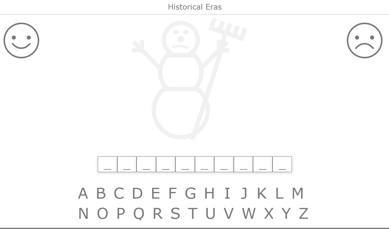 Let your students play the snowman widget when you want to teach them more about important historical people. When you taught them the most important people from a certain era, let them play the snowman widget to see if they can guess the right persons of that era, and whether they can explain their story again.
