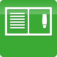 This widget splits the screen into two halves: one side is a drawable digital whiteboard and the other side is a scrollable piece with rich text, PDF, or a digital resource.